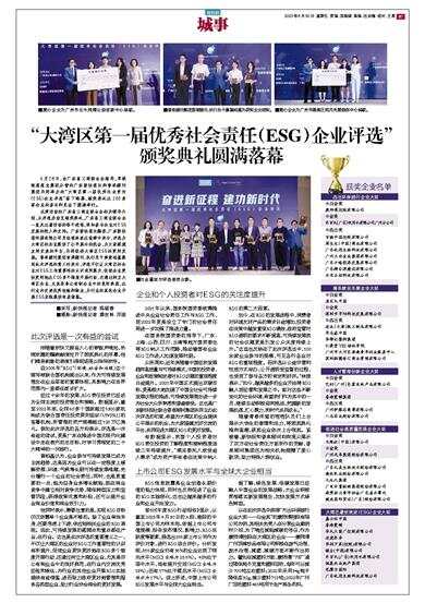 “大湾区第一届优秀社会责任(ESG)企业评选”颁奖典礼圆满落幕