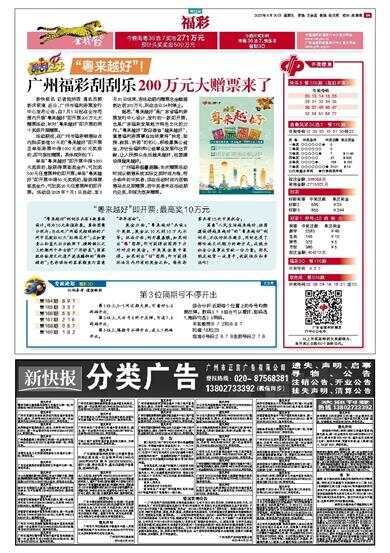 新快报讯 记者陆妍思 通讯员郭新庆报道 近日,广州市福利彩票发行中心发布公告,自7月1日起在全市范围内开展“粤来越好”即开票200万元大赠票活动,针对“粤来越好”即开票的两个奖级开展赠票。