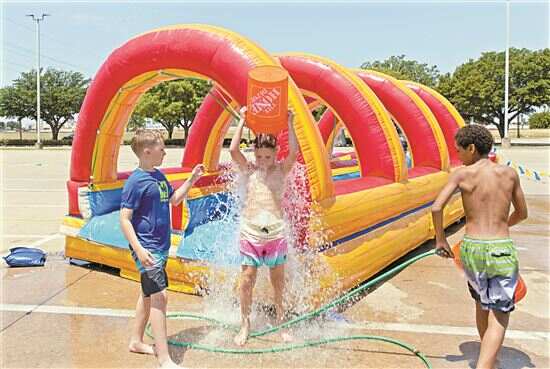■6月27日,在美国得克萨斯州达拉斯市郊,儿童在玩水。近日,美国得克萨斯州迎来高温天气,达拉斯气温达到华氏115度(约合46摄氏度)。 |