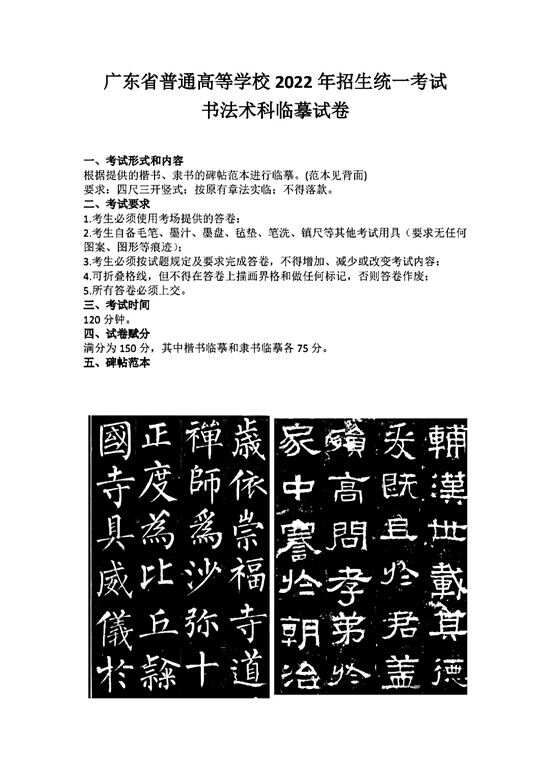 ■广东省普通高等学校2022年招生统一考试书法术科临摹试卷(部分) |