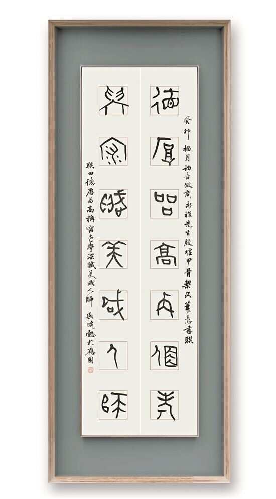 ■吴晓懿仿商承祚先生殷墟甲骨契文笔意书联。 |
