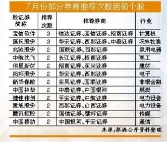 “五穷六绝七翻身”?6月“金股”六成上涨 7月来了,2023年上半年行情正式收官,A股市场沪指半年涨3.65%,创业板指跌5.61%,深成指微涨0.1%,走势分化。放眼全球大类资产方面,比特币上半年上涨84%成为表现最好的大类资产,紧随其后的是纳斯达克和日经225均涨超20%,天然气则大跌近40%为表现最差大类资产。 “五穷六绝七翻身”,回顾5月、6月A股市场,整体偏弱势,不少投资者对接下来的7月行情充满期待。作为券商月度策略的精华,月度“金股”成为不少股民关注的投资风向标,随着各大券商6月份“金股”成绩单出炉的同时,7月份投资组合及策略观点也陆续披露。 ■新快报记者 涂波 6月券商金股六成个股上涨 “金股”的市场表现反映出分析师对行业板块的前瞻性及风格配置的能力,是券商综合实力及核心竞争力的体现。今年1-6月,在全部44个券商“金股”组合中,有将近一半的组合跑赢上证指数,其中有10家券商的“金股”组合上半年的收益率不低于10%。在全部44个券商“金股”组合中,今年1月-5月曾有多达75%的券商“金股”组合收益率跑输上证指数。据同花顺数据统计6月券商推荐的月度302只“金股”中,182只个股上涨,占比为60%。 腾景科技6月份涨幅近60% 涨幅榜方面,其中由太平洋证券推荐的腾景科技夺得涨幅榜首位,6月份上涨57.56%。腾景科技是领先的光通信基础元器件供应商,产品应用于光通信和光纤激光领域,部分应用于生物医疗、AR、车载等领域,公司股价从2022年的4月的14元左右涨至6月30日历史新高53.43元。目前,腾景科技最新滚动市盈率为126倍,行业平均市盈率为36倍。 同时,由申万宏源推荐的金股精锻科技、国泰君安推荐的东威科技及由平安证券、开源证券推荐的源杰科技涨幅均超40%。值得一提的是,被至少7家券商推荐的中兴通讯,6月份涨幅29.45%,近期,群益证券(香港)中兴通讯也给出增持评级。日前,中兴通讯业界首发Real400G光传输方案,有望继续维持与中国移动等运营商的合作,共同推进400G商用进展,充分受益于400G骨干网建设周期。此外,被至少6家券商推荐的中国船舶,6月份涨幅14.19%、被至少5家券商推荐的科沃斯,6月份涨幅13.8%。 卓易信息跌幅居前 跌幅榜方面,由开源证券推荐的卓易信息6月份下跌28.79%,位于“金股”跌幅榜前列。卓易信息自2022年4月21.72元低点至2023年6月1日涨至96.44元历史新高,随后6月19日,迎来公司控股股东、董事长兼总经理谢乾减持计划已实施完毕公告。自2023年2月21日至2023年6月19日,累计减持股份126.96万股,6月30日,最新收盘价66.73元。 此外,由东方证券推荐的寒武纪下跌26.04%,信达证券推荐的遥望科技下跌23.53%。有5家券商推荐的中国中铁和3家券商推荐的紫光股份,6月分别下跌3.93和2.36%。对比A股6月份指数,上证指数上涨0.21%,深成指上涨2.16%,创业板指上涨0.98%。 7月机会在哪里 截至7月1日,粗略统计,已有开源证券、银河证券和招商证券等十余家券商公布超“金股”名单。涉及计算机、电子和家电等多个领域,其中,热点板块TMT和“中特估”依然受机构青睐。 具体来看,计算机行业的沪市央企宝信软件7月入选了信达证券、招商证券和国信证券3家券商的月度投资组合。信达证券研报指出,宝信软件深度布局自动化、工业互联网、信息化、云计算四大智能制造赛道,是国内稀缺的在高端自动化工业软件领域实现突破的企业,是国内目前产品序列最完整的高端智能制造龙头,肩负高端智能制造国产替代的使命,长期成长空间大。 此外,温氏股份7月入选了中泰证券、华安证券和西部证券的月度投资组合。6月30日,当天生猪均价为13.74元每公斤,每斤跌破7元大关,已经连跌8个月。华安证券认为,整个生猪养殖行业持续去产能背景下,估值已提前于基本面调整到位。温氏股份是全国第二大上市猪企,资产负债率偏低且2023年出栏维持较高增速。 同时,推荐次数居前个股当中,捷佳伟创、兆驰股份、中航沈飞和伟星新材等多只个股7月也均获2家券商的推荐。其中包括属于TMT方向,包括电力设备行业的捷佳伟创和爱旭股份、传媒行业的腾讯控股等,以及“中特估”个股,中航沈飞、中国移动、中国神华和中国平安等。 后市看法 TMT和中特估 双主线行情有望延续 随着下半年来临,多家券商A股2023年中期策略陆续出炉。综合来看,机构普遍认为,A股市场下半年将逐步走强。从配置角度出发,TMT(科技、媒体和通信)、AI(人工智能)、中国特色估值体系(下称“中特估”)等行业也被多家券商看好,中特估主线在经过前期调整后已逐步企稳,目前是布局的好时机。此外,制造、消费和周期等板块也是机构下半年看好的投资方向。 ●兴业证券首席策略分析师张忆东 战略性看多A股 下半年美国通胀缓慢下行,高利率环境将对四季度经济形成拖累,美股市场先扬后抑,四季度美债十年期收益率有望回到3.5以下。战略性看多A股和美股的科技行情,多关注安全发展格局下A股的三大结构性机会,数字经济仍是今年的最强主线。地缘政治风险影响下,港股宜被看作债券市场来配置,高股息深度价值的央企值得战略性配置。 ●川财证券首席经济学家陈雳 中特估板块市盈率估值 相对较低 今年以来,ChatGPT带火了人工智能主题行情,目前反映沪深市场人工智能主题的AI50指数自年初以来已涨近40%。陈雳表示今年以来,随着国内数字经济政策的持续推动叠加人工智能应用的快速发展,对上