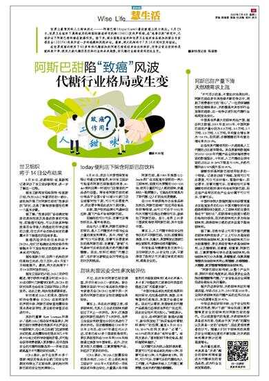 世界上最常用的人工甜味剂之一——阿斯巴甜(Aspartame)最近被推上风口浪尖。6月29日,世界卫生组织下属跨政府机构国际癌症研究机构(IARC)发布声明称,在“危害识别”研究中,已经评估了阿