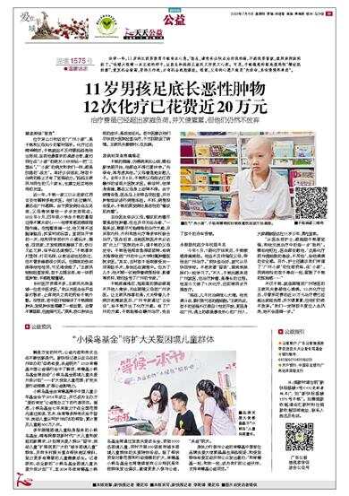 11岁男孩足底长恶性肿物 12次化疗已花费近20万元