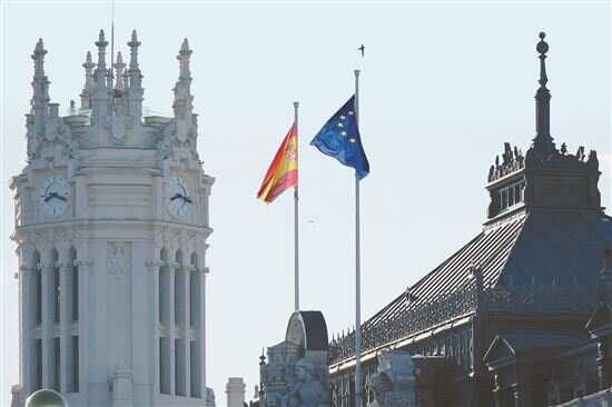 ■西班牙7月1日接任欧盟轮值主席国,图为西班牙国旗和欧盟旗帜。新华社发 |