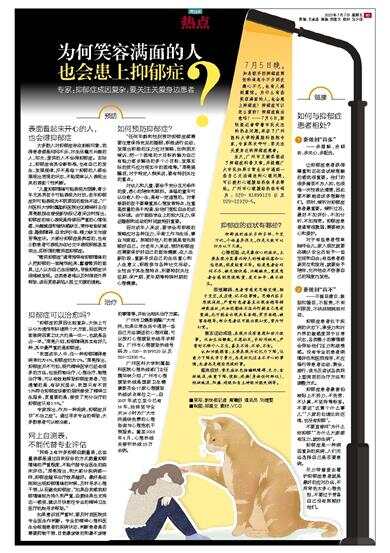 专家:抑郁症成因复杂,要关注关爱身边患者 7月5日晚,知名歌手因抑郁症离世的消息令不少网友痛心不已,也有人感到震惊。为什么有些笑容满面的人,也会患上抑郁症?抑郁症可以怎么预防?抑郁症