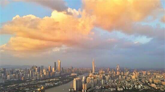 ■7月7日,晚霞将白云染成金黄色,与地面的广州城相互映衬。新快报记者 夏世焱/摄影报道