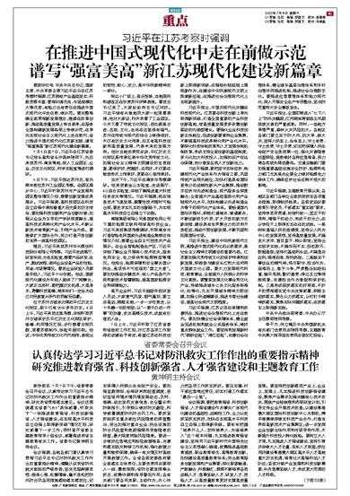 习近平在江苏考察时强调 据新华社电 中共中央总书记、国家主席、中央军委主席习近平近日在江苏考察时强调,江苏拥有产业基础坚实、科教资源丰富、营商环境优良、市场规模巨大等优势,有能力也有责任在