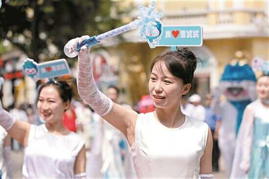 ■在哈尔滨市中央大街上,人们参加巡游庆祝。 |