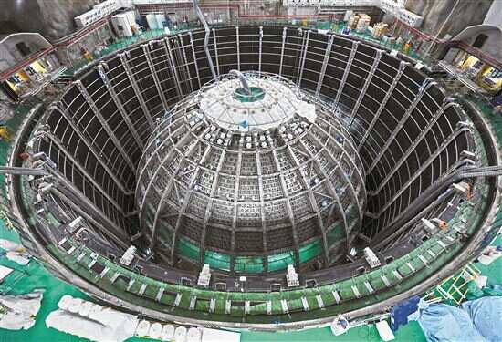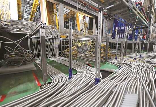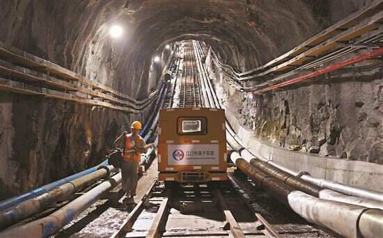 ■工作人员乘坐有轨缆车到达地下的江门中微子实验施工现场。 |