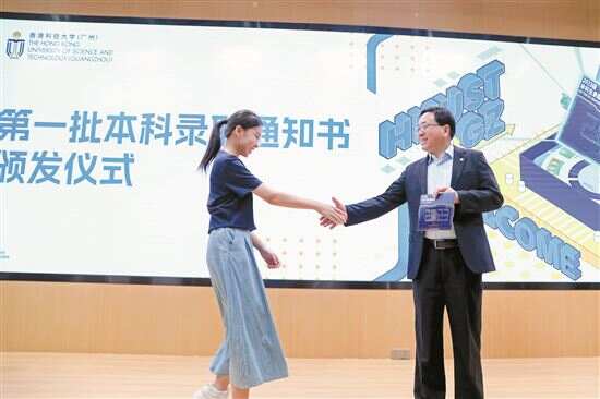 新快报讯 记者王娟 实习生独炘 通讯员港科广报道 “我们终于等到了首批本科生!”7月15日上午,香港科技大学(广州)举行首批本科录取通知书颁发仪式,多位广东省“直博班”获录学生、香港籍学生及家长来到校园,接受校长倪明选颁发的录取通知书。 “拿到录取通知书的一刻,我内心是喜悦和激动的,同时感到有一种责任。”首批拿到录取通知书的“直博生”徐画来自佛山市南海区石门中学,他告诉记者,喜悦与激动是源于能被自己心仪的学校所录取,而责任是在于港科大(广州)今年是第一年本科招生,要跟港科大(广州)这样年轻的学校一同成长。 当天颁发仪式上,共有7名新生在家长和老师们的见证下,从港科大(广州)校长倪明选手中,领到了属于自己那份沉甸甸的录取通知书。 今年是港科大(广州)首次招收本科生,开设人工智能、数据科学与大数据技术、智能制造工程三个专业。今年该校在中国内地录取的125名本科生,均为理科(或选科为物理),全部在提前批、依据高考分数录取,不采取综合评价;录取中国港澳台学生12名;录取国际学生3名。 倪明选透露,初步预计明年学校本科招生将扩大到其他省份招生,通过高考录取的招生计划约为250名。