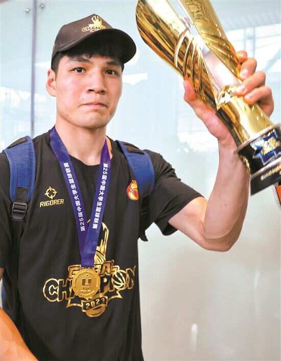 ■6月19日,球队击败清华大学,陈国豪以一座金杯告别大学生涯。新快报记者 李小萌/摄 |