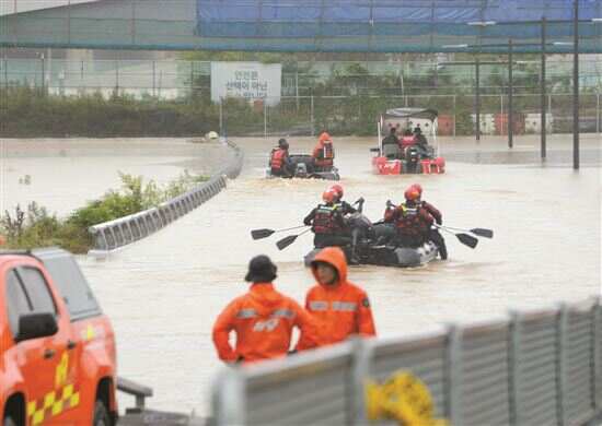 大批航班取消 首尔数千户家庭停电 据新华社电 韩国部分地区连日遭遇强降雨天气,据韩联社报道,截至15日下午强降雨已造成24人死亡,另有10人失踪。 报道说,主要受灾地区在忠清道、庆尚北道等中部地区。连续4日的强降雨引发山体滑坡,造成房屋倒塌、车辆损毁和农作物被淹,导致人员伤亡和失踪。 在忠清北道,槐山坝水位超过最高水位出现外溢,附近8个市、郡共计7000余名居民被紧急疏散。随着槐山坝泄洪量增大,河道旁部分低洼地区完全被洪水淹没,附近多地出现道路积水。 暴雨致使上百架次航班被迫取消,首都首尔数以千计家庭电力供应一度中断。 韩国行政安全部通报,受强降雨影响,截至14日上午11时,首尔超过4000户家庭停电。韩国机场公社说,截至当天下午5时,超过130架次航班因天气原因不得不取消,超过270架次航班延误。 此外,暴雨还导致韩国部分列车停运,仍在运行的列车或将出现大面积晚点。 韩国总理韩德洙同政府官员开会时说,当前最重要的事是确保没有人员死伤,要求官员保持戒备状态。 由于首都圈地区和韩国中部地区接连出现强降雨,且气象预报显示今后几天仍有更多降雨,韩国行政安全部13日将上述地区的暴雨灾害警报从“警戒”上调至“严重”级别。 韩国气象厅预报,韩国中部一些地区14日晚至15日每小时降雨量最大或将达到100毫米。在忠清南道和全罗北道一些地区,截至16日的累计降雨量预计将达到400毫米,庆尚北道一些地区可能经历超过300毫米的强降雨。 去年8月,暴雨袭击韩国中部地区,导致13人死亡,多人失踪,首尔多地被淹。