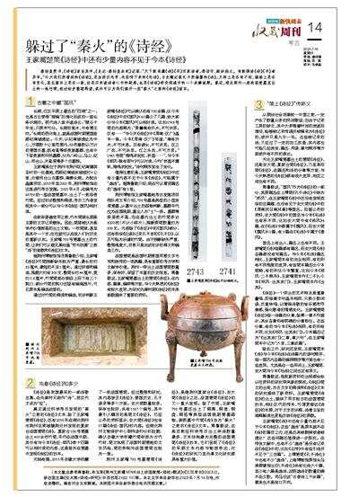 王家嘴楚简《诗经》中还有少量内容不见于今本《诗经》 秦始皇焚书,《诗经》首当其冲。《史记·秦始皇本纪》记载:“天下敢有藏《诗》《书》百家语者,悉诣守、尉杂烧之。有敢偶语《诗》《书》者弃市。