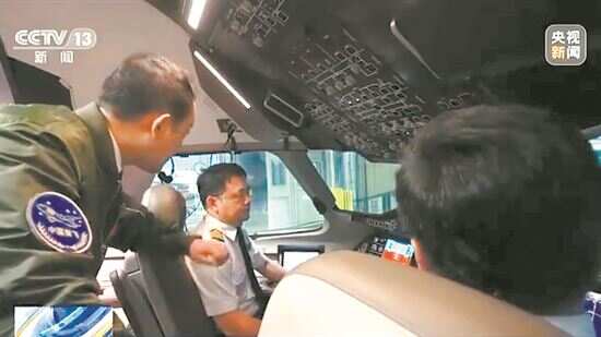 ■在C919飞机飞行模拟器驾驶舱内,佟宇正在对东航飞行员进行培训。 |