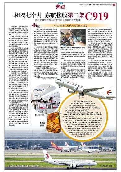 ■7月16日,东航正式接收第二架国产C919大型客机。 |