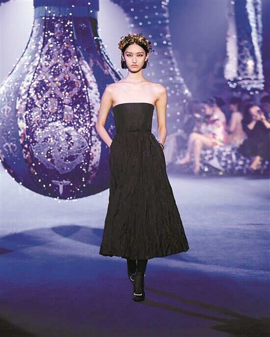 迪奥二零二三秋冬成衣系列发布秀日前于深圳举行。发布秀当晚星光熠熠,云集了迪丽热巴、江疏影等多位明星。 秀场置景来自葡萄牙艺术家琼娜·瓦斯康丝勒,她从迪奥品牌典藏的花卉面料中汲取灵感,通过大量的缝纫、编织、钩编等工艺,创作出恢宏且震撼的大型装置艺术实景作品,链接起不同时代与文化,让秀场充满了如星辰大海般的深邃闪耀。 本季女装成衣系列从世界多位代表性人物身上撷取灵感,勾勒出多元女性时尚风姿。迪奥女装创意总监玛丽亚·嘉茜娅·蔻丽再度开启全新方式诠释上世纪五十年代风格,以丰富造型表达女性柔美与坚韧并存的风采。