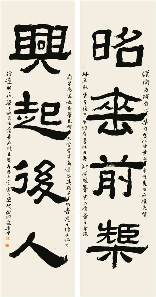 ■秦建中,《衡方碑集字联》,释文:昭垂前矩,兴起后人 |