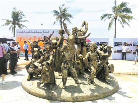 7月19日,“环游世界的胖太阳走进南海Ⅰ号——许鸿飞雕塑世界巡展·中国阳江”在广东海上丝绸之路博物馆开幕,展出许鸿飞雕塑作品13件,包括《鹅》《欢歌》等典型作品。值得一提的是,同期还展出了他的新作《民族大团结》,现场举办了揭幕仪式。 中国文学艺术评论家协会主席夏潮在现场表示:“为了让中华优秀传统文化走向世界,许鸿飞做出了很多努力,是一位很有成就的艺术家。许鸿飞是一位很勤奋的艺术家,他用自己的创作打造出了一个‘肥女’形象的文化符号,并让它走向世界。用艺术的方式,向世界讲述了我们中国人的故事,讲述了我们奔向幸福美好生活的精神面貌。” 全国政协委员、中国美术家协会理事、广东省美术家协会副主席、广东省人民政府文史研究馆馆员、国家一级美术师许鸿飞透露,这几乎是自己策划时间最短的一次展览。“我的雕塑与南海Ⅰ号所代表的文化均有一个共同点,就是中华文化走出去。在南宋期间的南海Ⅰ号是准备向世界输出我们特有的工艺品,而我的雕塑同样在世界上走过了20多个国家与地区,向世界讲述了属于我们美好生活的故事,因此,在这样的历史背景下,举办这场展览有着特殊的意义。”(梁志钦) 时间:7月19日-28日 地点:广东海上丝绸之路博物馆