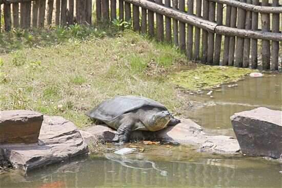 ■2009年,雌性斑鳖“湘湘”在苏州动物园晒背。吕顺清/摄 |