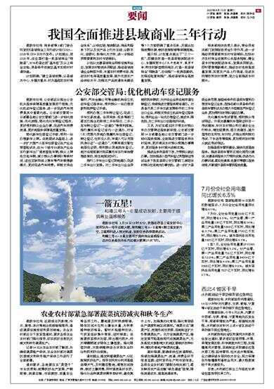 和德三号A-E星成功发射,主要用于提供商业遥感服务 据新华社电 8月14日13时32分,我国在西昌卫星发射中心使用快舟一号甲运载火箭,将和德三号A-E星等5颗卫星发射升空,卫星顺利进入预定