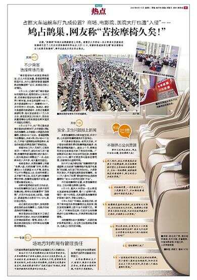 占据火车站候车厅九成位置?商场、电影院、医院大厅也遭“入侵”…… 近期,“按摩椅”的相关话题频频登上热搜。继重庆火车西站一名女乘客长发被卷进按摩椅引发了人们对共享按摩椅的争论后,8月11日
