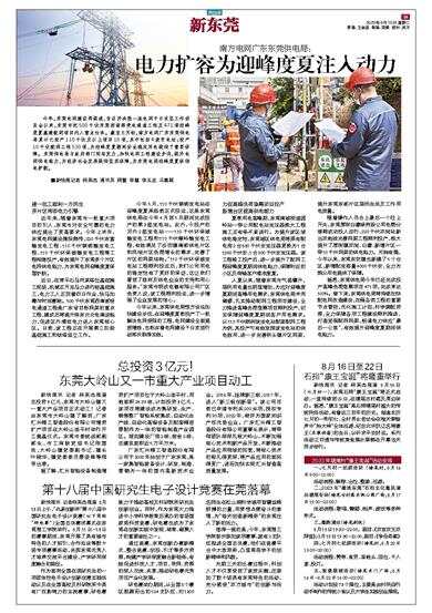 南方电网广东东莞供电局:电力扩容为迎峰度夏注入动力