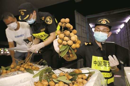 新快报讯 记者李红云 通讯员袁文立报道 8月14日晚11时许,4吨新鲜采摘的广东高州储良龙眼在拱北海关所属港珠澳大桥海关的监管下,顺利通关运往香港,并将直达香港水果批发市场,实现当日采摘当日抵港。这是今年7月1日开放全品类内地鲜活食品在指定时段经大桥口岸供港后的首票新鲜水果。 “大桥口岸全年24小时不间断通关,这一优势也恰好满足了水果时效性强、一般利用夜间通关的要求,我们开通了‘绿色通道’,确保鲜活产品通关‘零延时’”。拱北海关所属港珠澳大桥海关监管四科副科长张广耀介绍。