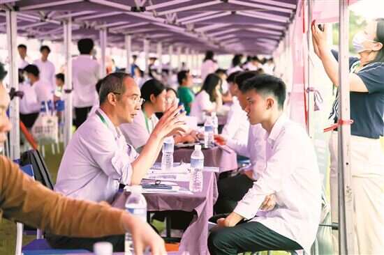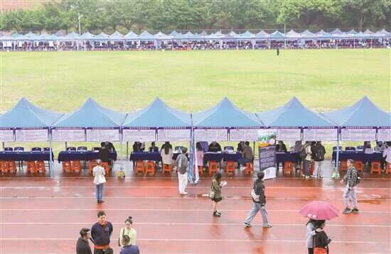 ■“职引未来 筑梦南粤——2023年高校毕业生春季招聘会”在华南理工大学操场举行。 新快报记者 龚吉林/摄(资料图) |