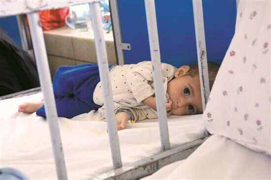 ■7月10日,营养不良患儿在阿富汗喀布尔英迪拉·甘地儿童健康研究所接受治疗。新华社发 |