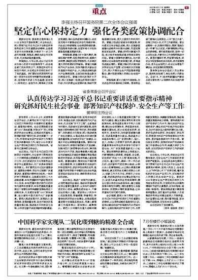 认真传达学习习近平总书记重要讲话重要指示精神 研究抓好民生社会事业 部署知识产权保护、安全生产等工作