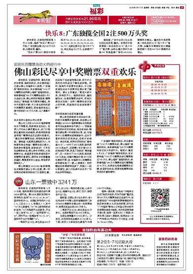 新快报讯 记者陆妍思报道 8月15日晚,福彩“快乐8”第23217开奖,广东包揽全国2注500万元大奖,分落东莞、肇庆。 “快乐8”第23217期的中奖号码为“06、09、12、22、24