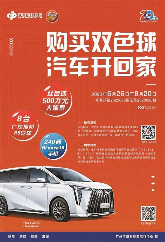 广州福彩“购买双色球,汽车开回家”剩最后一台汽车待彩民参与抽奖 新快报讯 记者陆妍思 通讯员郭新庆报道 8月16日上午,广州市福利彩票发行中心举办了“购买双色球,汽车开回家”第七期抽奖仪式,本期一等奖“汽车+8万元现金”被番禺区彩民中得。根据活动安排,第七期抽奖仪式结束后,活动仅剩一期,剩余未送出的奖品为1台汽车、30台手机。 番禺彩民圆“汽车梦” 据统计,第七期“购买双色球,汽车开回家”活动期间广州市共售出单张满20元的双色球游戏彩票438756张,其中参与登记抽奖的有效票数为261270张。本期活动继续安排16位由销售站点代表、彩民代表组成的抽奖嘉宾上台抽奖,经过多轮抽取,30个二等奖、1个一等奖先后出炉。其中,本期的一等奖“汽车+现金”花落番禺区钟村镇雄数直街19号44012615号福彩销售站点。 “我已经连续多年参加抽汽车活动了,没想到今天撞中好运,我总算是圆梦了!”中得第七期一等奖的得主是家住番禺钟村的街坊叶先生,他表示自己投注“双色球”游戏已有十多年,每年的“购买双色球,汽车开回家”更是期期都会登记参与抽奖,“活动参与方式简单,用手机登记一下就可以参与抽奖,反正就是图个运气!”今年活动启动后,叶先生每逢双色球开奖日就会购买几张20元5注2倍投的双色球彩票并参与活动。尽管前六期未能如愿,但他没有放弃,第七期活动期间他照例购买了几张满20元的双色球彩票。他说:“我参加活动的想法就是重在参与,只要登记就有机会抽中,听说活动就剩最后一期了,我打算继续登记彩票,希望再中一部手机!” 根据活动安排,“购买双色球,汽车开回家”第七期抽奖仪式结束后,抽奖结果将在全市各福彩销售站点及广州福彩网(www.gzflcp.org.cn)等渠道公布。本期中奖彩民须在8月22日前凭中奖彩票原件及本人有效身份证件到广州市福彩中心(越秀区西湖路99号44011888销售站点办公窗口)办理兑奖手续,逾期未办理者将视为弃奖。 活动将于本周日结束 据了解,为真情回馈彩民,广州市福利彩票发行中心连续十年重磅推出“购买双色球,汽车开回家”大型营销宣传活动。6月26日起至8月20日,在广州市福彩销售站点购买单张满20元的“双色球”游戏彩票,扫描活动二维码并通过“广州福彩”微信平台登记,即可参与汽车加现金抽奖。活动共开展8周,共送出8台广汽传祺M8汽车、240部Hi Nova手机以及现金64万元。据统计,第一期至第七期活动期间,广州市共售出“双色球”游戏约1.9亿元,带动筹集公益金超6825万元。筹集到的公益金将按照规定比例上缴省、中央以及用于全市社会公益和福利事业。 第七期抽奖仪式结束后,“购买双色球,汽车开回家”活动仅剩1期,目前活动还剩余1台汽车、30部手机待广大彩民参与登记抽奖,第八期登记抽奖截止时间为8月20日24:00,抽奖仪式将在8月23日上午举行。