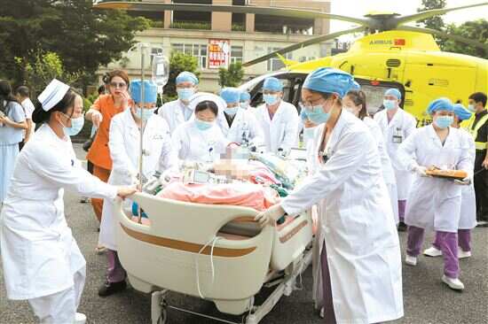 中山大学孙逸仙纪念医院实施粤东首例“空中ECMO辅助下生命救援” 新快报讯 记者黎秋玲 通讯员林泽锋 刘文琴 黄睿 程颖报道 “直升机还有5分钟降落,请地面做好接机准备……”8月19日17时,随着一声轰鸣,医疗救援直升机搭载着ECMO循环支持下的缺血性心肌病患者从汕尾飞抵广州,由中山大学孙逸仙纪念医院深汕院区转运至该院南院区。这是该院首次实现双城两院区协同空中转运案例,也是粤东首例“空中ECMO辅助下生命救援”。 这次“空中生命线”,为紧急危重症患者提供了高效便捷、快速安全有效的转运途径,赢得了宝贵的救治时间。 本次“紧急空中生命救援”对象为59岁的郑叔。3天前,他在家中突发晕厥,1分钟后自行苏醒,于外院就诊。在就诊当晚,患者出现意识丧失,心电图提示室颤心律,电击除颤后复律。在当地医院治疗期间,郑叔恶性心律失常反复发作,药物控制效果差,考虑为电风暴。十多次的电除颤让郑叔苦不堪言。当地医院随即向中山大学孙逸仙纪念医院深汕院区郑俊猛教授团队求助,郑俊猛教授评估后,认为该患者电风暴发作,随时都有猝死的风险,不适宜长途转运。 经团队协商,决定通过ECMO空中转运的方式完成转送。8月19日15:30,飞机在汕尾起飞。一个半小时后,医疗救援直升机平稳地降落在中山大学孙逸仙纪念医院南院区停机坪,螺旋桨的呼啸声还未停歇,守候一旁的心血管外科团队和重症监护团队的医护人员就已快步上前,迅速为患者连接转运呼吸机连同ECMO快速转运至重症监护室行监护治疗,并按预先制定的方案进行救治。