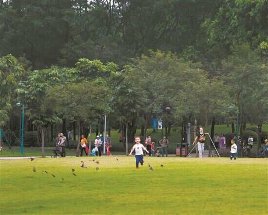■小朋友在珠江公园的草地上快乐奔跑。 |
