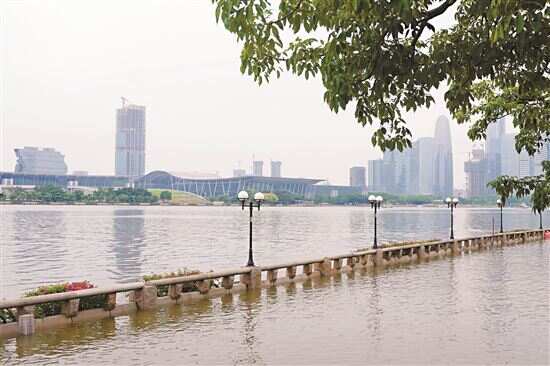 ■9月2日上午到中午,广东沿岸出现天文大潮(最高潮位超过2米),另外台风“苏拉”也会带来风暴增水叠加影响,位于临江大道的员村亲水平台已经被护栏围住并拉起了警戒线,江水已经没过最靠近江边的一层。 新快报记者 郭思杰/摄 |