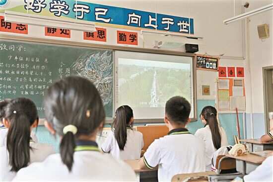 ■9月1日,在天津市静海区实验中学,同学们在开学第一课上观看抗洪视频。 新华社发 |