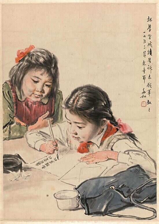 ■《把学习成绩告诉志愿军叔叔》 蒋兆和 中国画 |