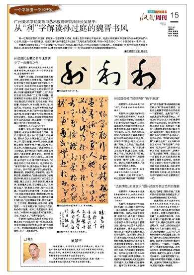 每一位青史留名的书法家,都是某一方面的集大成者,而通才型的书家也不胜枚举。但是如何能够从书法家的作品中窥探他的内心世界,却是一个永恒的难题。但就如唐代张怀瓘《文字论》言:“文则数言乃成其意,书则一字已见其心。”一个字足见作者心境与个性。 收藏周刊连续多期以“一个字读懂一位书法家”为思路,邀约名家,对书法经典进行深度剖析。本期邀请广州美术学院美术教育学院院长、美育与艺术教育研究所所长、博士生导师吴慧平用一个“利”字品读唐代孙过庭继承的魏晋书风。 孙过庭比王羲之书写速度快 少了一点雍容之气 收藏周刊:唐代孙过庭在书法史上有重要的影响,假设我们用一个字来形容他,您会想到哪个字? 吴慧平:孙过庭,正史如新旧唐书皆无传,其他资料又非常有限。但就凭他给我们留下来的皇皇巨制《书谱》,三千七百余字,书法艺术和书法学理的合璧之作来看,他在书法史上的功劳不可或缺。《书谱》直接继承了魏晋“二王”为主的主流书风,深得“二王”草书精髓。就其阐释的书法理论而言,《书谱》涉及了书法理论的方方面面,如书法本质、书法临摹、书法创作、学书过程、学书心理、书法风格、书法技法、书法欣赏等方面均讲得非常深刻,代表了当时书法理论的最高水准,标志着中国古代书法理论体系的初步确立。如果从孙过庭的性格和他的书法风格来说,我头脑里一下子就会蹦出“利”这个字来形容他。 收藏周刊:为什么选“利”字? 吴慧平:首先,孙过庭的性格是有些急躁的,有初生牛犊不怕虎之气概。唐代贞观年间,唐太宗广收王羲之书法真迹,而孙氏自认为得王羲之门庭,“余志学之年,留心翰墨,味钟张之馀烈,挹羲献之前规,极虑专精,时逾二纪,有乖入目之术,无间临池之志。”这是他取法二王的例证,至于他的水平如何,他是这样说的:“尝有好事,就吾求习。吾乃粗举纲要,随而授之,无不心悟手从,言忘意得;纵未穷于众术,断可极于所诣矣。”这是他对自己书法的自信。他后面有说:“吾尝尽思作书,谓为甚合,时称识者,辄以引示。其中巧丽,曾不留目;或有误失,翻被嗟赏。既昧所见,尤喻所闻。或以年职自高,轻致陵诮。”这是他的自信心被摧毁的时候,他怎么反击的呢?“余乃假之以缃缥,题之以古目,则贤者改观,愚夫继声,竞赏毫末之奇,罕议峰端之失。”又形容这些人“犹惠侯之好伪,似叶公之惧真。”反击得多么利落无情!不正好反映了孙过庭的愤世嫉俗、儁拔刚断之性格吗?再从他的书法风格而言,唐代张怀瓘《书断》说:“过庭博雅有文章,草书宪章二王,工于用笔,儁拔刚断,尚异好奇,凌越险阻……与王知敬友善,王则过于迟缓,孙亦伤于急速。使夫二子宽猛相济,是为合矣。”米芾评价孙过庭的草书“唐草得二王法,无出其右。”可谓评价高矣。 尽管我们说孙过庭的草书来自于王羲之的《十七帖》,但仔细一比较,还是会带有孙过庭自己的特点,正所谓“书如其人”也。孙过庭明显要比王羲之书写的速度快,少了一点雍容之气。 孙过庭性格“尚异好奇”“伤于急速” 收藏周刊:我们从他笔下的“利”,可以看出他书法怎样的特点? 吴慧平:孙过庭《书谱》中的“利”出现在后半部分,“有龙泉之利,然后议于断割。”说的是我们从事书法批评与鉴赏,必须以高超的艺术实践与深厚的艺术素养为前提。《说文解字》上说,“利,铦也。从刀。和然后利,从和省。”许慎的这个解释和孙过庭书法风格的描叙有些差异。许慎引用《易经·乾文言》中话语:“利者,义之和也。”表达的是利是义理的统一。和“元者,善之长也;亨者,嘉之会也;贞者,事之干也。”统称为君子四德。而今天我们要讲的“利”,我觉得应该是“锋利”之意,从刀,从禾。表示以刀断禾的意思,“龙泉之利”正是这个意思。 收藏周刊:从“利”字,能否品读出孙过庭的人生态度? 吴慧平:上面我们也讲了,孙过庭性格“儁拔刚断”“尚异好奇”“伤于急速”等词语都很好地反映出“利”所含有的意思。当然这也是魏晋时期书法风格的一个重要特征。就是“劲”“利”,也就是说写得快速而有力。不信,我们可以从后人评价魏晋时期的书法来证明。如《别传》形容王献之书法“其峭峻不可量也”,《墨林快事》形容王献之书法“笔画劲利”,陶弘景评价许翙的书法“许翙书乃是学杨义,而字体劲利。”《书断》评价陶弘景“其真书劲利”,《述书赋》评价王述书法“高利迅薄”,评价庾准“荒芜快利”,梁武帝评王彬之书法“放纵快利”,评萧子云“笔力劲骏”等等。因此从这一方面而言,孙氏还是很好地继承了魏晋书法传统。当然我们从上面的分析也可以看出孙过庭书法自视甚高,因此有时做事显得不够成熟老练,有些愤世嫉俗之味道,这也许是他在当时就被封杀的主要原因之一吧。 “达其情性,形其哀乐”是孙过庭对书法艺术的理解 收藏周刊:大概知道孙过庭《书谱》影响不小,如果从书法史的角度,它到底在哪些方面起到了作用? 吴慧平:我感觉当时孙过庭的《书谱》一出,隐射了当时书坛一些丑恶现象,以至于被打压得默默无闻。当然从书法史的角度,初唐书论,最为重大的是孙过庭的《书谱》,三千七百余字,内容涉及中国书学的各个重要方面,揭示出书法艺术本质及众多重要规律。是我国古代书法理论史上一部具有里程碑意义的书论著作。“达其情性,形