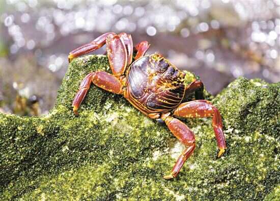 ■在厄瓜多尔加拉帕戈斯群岛的南普拉萨岛上拍摄的一只红石蟹。新华社发 |