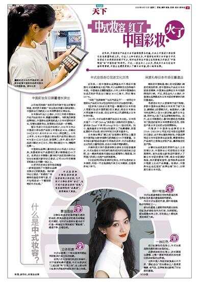 近年来,中国彩妆产品在日本市场销售势头旺盛,日本从中国进口彩妆等化妆品数量快速上升。行业人士和专家认为,中国彩妆走俏日本市场与中式妆容在日本受到欢迎密不可分,同时也折射出中国企业创新能力升级及“