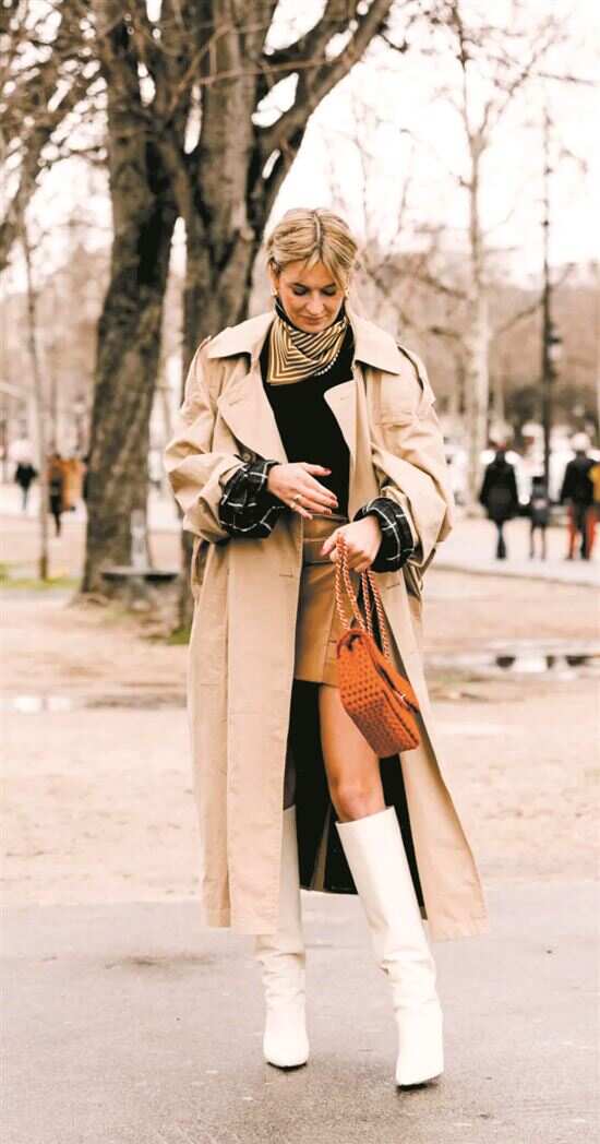 长风衣搭长靴帅气效果叠加,窄且能看出腿部线条的长靴更妙。 |
