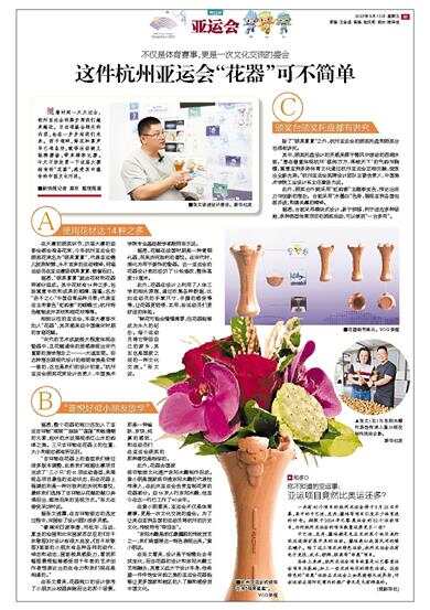 不仅是体育赛事,更是一次文化交流的盛会 随着时间一天天过去,杭州亚运会的脚步离我们越来越近。与这项盛会相关的内容,也在一步步向我们走来。西子湖畔,鲜花和掌声早已准备好,就等运动健儿驰骋赛场,带来精彩比赛。今天不妨欣赏一下这届大赛独有的“花器”,感受其中蕴含的中国文化巧思。 ■新快报记者 高京 整理报道 A 使用花材达14种之多 在大赛的颁奖环节,历届大赛的组委会都会准备花束,今年杭州亚运会的颁奖花束名为“硕果累累”,代表亚运健儿披荆斩棘,永不言弃的运动精神,祝福运动员在亚运赛场硕果累累、载誉而归。 据悉,“硕果累累”就由花材和花器两部分组成。其中花材有14种之多,包括寓意丰收和成果的稻穗、莲蓬;名为“赤子之心”中国自育品种月季;代表亚运主形象色“虹韵紫”的蝴蝶兰;杭州特色植物龙井茶枝和桂花枝等等。 相较以往的亚运会,本届大赛首次加入“花器”,其灵感来自中国南宋时期的官窑花觚。 “宋代的艺术成就极大程度体现在瓷器中,且花觚通体的质感表现出宋代重要的美学理念之一——大道至简。而这种理念跟现代设计的极简审美是非常一致的,这也是我们的设计初衷。”杭州亚运会颁奖花束设计负责人、中国美术学院专业基础教学部教师张文说。 据悉,花觚在战国时期是一种青铜礼器,用来庆祝胜利的喜悦。在宋代时,演化为用于装饰的瓷器。这一亚运会的花器设计前后经历了12轮修改,整体高度19厘米。 此外,花器在设计上利用了人体工学的相关原理,通过收集各种数据,比如运动员的手掌尺寸、手握的感受等等,让花器更轻便、实用,给运动员们更舒适的体验。 “鲜花可能会慢慢凋零,但花器能够成为永久的纪念。每个运动员将它带回自己的家乡,其实也是国家之间的一种文化交流。”张文说。 B “喜悦好似小朋友放学” 据悉,整个花器的瓶口还加入了亚运吉祥物“宸宸”“琮琮”“莲莲”和钱塘潮的元素,起伏的水纹展现浙江山水的韵律之美。三只吉祥物在花器上的位置、大小和姿态都有所区别。 “吉祥物在花器上的造型我们做过很多版本调整,此前我们根据比赛项目完成了‘三小只’的61项运动造型,来展现各项目最佳的运动状态,而在花器上强调的则是一种对胜利的庆祝和喜悦,最终我们选择了吉祥物从花觚的觚口奔涌而出、踏浪而来的呈现方式。”张文在接受采访时说。 据张文透露,在吉祥物姿态的选定过程中,宋画给了设计团队很多灵感。 “像南宋四家李唐、刘松年、马远、夏圭的绘画和北宋画家苏汉臣的《百子欢歌图》对设计有很大启发。《百子欢歌图》里面的小朋友有各种各样的动作、神态和动态,画面极具感染力,看到那幅图景便能够感受到千年前的艺术创作者想表达出的生命力和我们现在是相通的。” 在张文看来,花器瓶口的设计参考了小朋友从校园奔跑而出的那个场景,那是一种雀跃、欢快、纯真的感觉,和运动员们在亚运会获奖的那种喜悦是相似的。 此外,花器由国家级非物质文化遗产东阳木雕制作而成。黄小明是国家级非遗东阳木雕的代表性传承人,在此次亚运会负责监制花束的花器部分。自16岁入行东阳木雕,他至今在这一行已工作了40余年。 在黄小明看来,亚运会不仅是体育赛事,更是一次文化交流的盛会。为了让来自亚洲各国的运动员将杭州的历史文化、传统符号“带回去”。 “东阳木雕是浙江最耀眼的传统技艺之一,我们希望将这一特色表现出来。”黄小明说。 在张文看来,设计是于细微处去寻找变化,而当花器的设计和东阳木雕工艺相融合,其意义远大于设计本身,他希望一件件饱含宋韵之美的亚运会花器能够让更多国家和地区的人了解和感受到中国文化。 C 颁奖台颁奖托盘都有讲究 除了“硕果累累”之外,杭州亚运会的颁奖托盘和颁奖台也很有讲究。 其中,颁奖托盘设计的灵感来源于微风中波动的西湖水面。“意在着重体现杭州‘温润万方、泽被天下’的气韵与胸襟,寓意亚洲多彩体育文化通过杭州亚运会互相交融,绽放出全新光彩。”杭州亚运会奖牌设计团队主要负责人、中国美术学院工业设计系主任章俊杰说。 此外,颁奖台外侧采用“虹韵紫”主题渐变色,传达出活力与创新的理念。台面采用“水墨白”色彩,展现亚洲各国包容并进,和谐共赢的精神。 据悉,台面采用模块式设计,易于拼搭,利于适应多种场地、多种类型体育项目的颁奖活动,可以做到“一台多用”。 知多D 你不知道的亚运事: 亚运项目竟然比奥运还多? 一共有40个项目的杭州亚运会将于9月23日开幕,其中的卡巴迪、龙舟、藤球等项目引发不少体育迷的好奇。相较于2024年巴黎奥运会的32个运动项目,为何杭州亚运会的项目数量还要更多一些? 卡巴迪、龙舟、藤球都是先在亚洲某个地区流行然后逐渐扩展开来的运动。藤球类似我国民间的踢花毽子。除了这三项亚洲特色运动,杭州亚运会还有电子竞技、武术、桥牌、棋类等“非奥”项目。 总体上来讲,杭州亚运会项目设置是以巴黎奥运会项目为基础,加上一些亚洲地区的特色运动。这些特色的“非奥”运动在亚运会上如果能够大放异彩,对该运动在国际范围内的推广普及是大有裨益的。 (据新华社)