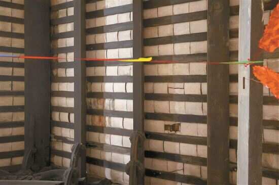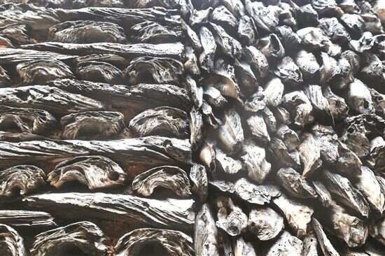 ■蚝壳墙的蚝壳比一般的长和大,左侧:罕见的一顺一丁砌法;右侧:常见的丁砌法 |