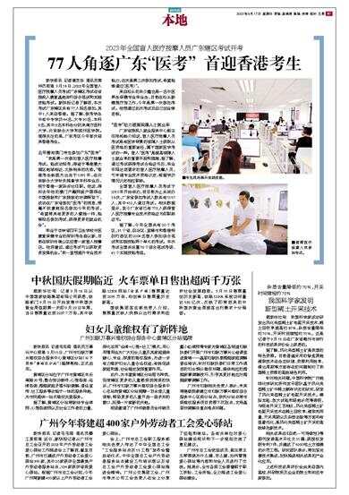 2023年全国盲人医疗按摩人员广东辖区考试开考 新快报讯 记者潘芝珍 通讯员黄仲杰报道 9月16日,2023年全国盲人医疗按摩人员考试广东辖区考试在省残疾人康复基地举行综合笔试和实践技能考试。新快报记者了解到,本次考试广东辖区共有77人报名参加,其中1人来自香港。据了解,参考学生中有中专学历44名、大专30名、本科3名,其中3名本科生分别来南方医科大学、北京联合大学和滨州医学院。值得关注的是,广东考区今年首次迎来香港考生。 去年曾有澳门考生参加广东“医考” “我是第一次参加盲人医疗按摩考试。能成功报考,得益于粤港澳大湾区地域相近、文脉相亲的优势。”香港考生杨凯杰出生于1991年,在北京联合大学针灸推拿学本科毕业后,现于香港一家杂志社任职。他说,得知去年他的澳门户籍师姐户圆菲在中国残联和广东残联的协调帮助下,成功在广东省参加“医考”的消息,便毫不犹豫地报名参加今年的考试,“希望将来有更多的人像她一样,能够报名参加考试,获得更多的就业机会”。 毕业于吉林省四平卫生学校中医康复保健专业的深圳考生曲以新,目前在深圳市南山区经营一家盲人按摩店。他笑着说,通过考试可以获取更多发展机会。“我一直想提升专业技术能力,这次是第三次参加考试,希望能够通过(医考)”。 来自汕头的朱少鑫也是一名中医养生保健专业毕业生,目前在汕头新健理疗馆工作,今年是第一次参加考试。他想通过此次考试后自己创业做老板。 “医考”助力提高视障人士就业率 广东省残疾人就业服务中心副主任陈柏杨介绍说,盲人医疗按摩人员考试是有医学背景的视障人士获取从医资格的重要途径,属于国家医学考试的一种。盲人“医考”是提高视障人士就业率的重要手段和措施,据了解,通过考试获得考试合格证书后,毕业年限达到要求的盲人医疗按摩人员,可申请专业技术资格认定,根据学历情况认定相应职称。 全国盲人医疗按摩人员考试于2010年开始举办,到目前为止共举办13次,广东省参加考试人数共有1157人,其中412人通过考试。相关数据显示,至今广东省已有778人获得盲人医疗按摩专业技术资格证书即职称证书。 据了解,今年全国共有20个考区,31个省、自治区、直辖市和香港特别行政区的2004名盲人参加综合笔试和实践技能两个单元的考试。本次考试全国共设置76个综合笔试考场、61个实践技能考组。