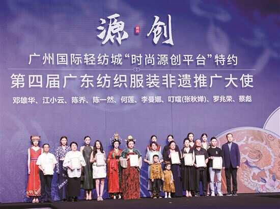 9月19日,由广州国际轻纺城“时尚源创平台”独家特约支持的第四届广东纺织服装非遗推广大使联合发布会在2023广东时装周-秋季主会场华丽绽放。发布会上,邓雄华、江小云、陈乔、陈一然、何莲、李曼娜、叮噹(张秋婵)、罗兆荣、蔡彪等九位获颁“第四届广东纺织服装非遗推广大使”荣誉称号。与此同时,组委会还特别向广州国际轻纺城颁发“纺织服装非遗卓越推动奖”,以肯定其在推动纺织非遗保育与创新可持续发展上的贡献。 作为“非遗新造”项目的重要展示平台,广东时装周自首批“广东纺织服装非遗推广大使”正式推出以来,越来越多的广东设计师、品牌及企业以“服装”为介质,不断在设计中运用传统非遗手工技艺,促进非遗与“岭南衣”的融合创新,通过广东时装周的舞台,让古老的非遗文化以更灵动的姿态走进人们的日常生活。 发布会现场,新一届广东纺织服装非遗推广大使向观众们展现了一批兼具文化内涵和市场价值的非遗时尚产品,巧妙融合了非遗传统技艺、创意时尚与现代生活方式,体现着非遗对当代美好生活的深度浸润。