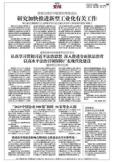 省委全面依法治省委员会召开会议 黄坤明王伟中出席 新快报讯 9月20日下午,省委全面依法治省委员会召开会议,全面贯彻党的二十大精神,深入学习贯彻习近平法治思想和习近平总书记对广东重要