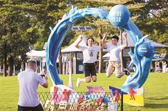 国庆假期,天气晴朗,不少市民到广州二沙岛游玩。
