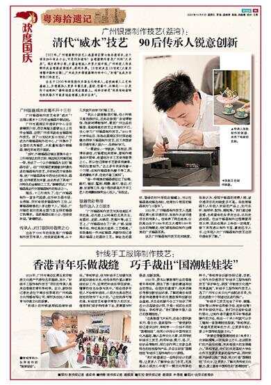 2023年,广州市南沙区第五批非物质文化遗产代表性名录揭晓,其中,“针线手工服饰制作技艺”项目的传承人是来自香港的青年李柏亨。近日,新快报记者走进位于南沙创享湾的广州柏晶文化传播有限公司,倾听其创始人李柏亨与非遗文化的故事。 “我很小的时候就帮妈妈做针线活。”李柏亨说,他与针线手工结缘与其家庭环境有关系,他母亲和外婆从事针线纺织工作,经常把针线活带回家做,懂事的他也会参与其中。“现在很多年轻人不会做针线活,小朋友也是在芭比娃娃的陪伴下长大的。”让他觉得可惜的是,针线技艺有着非常悠久的历史,值得我们保护和传承下去,更需要与时俱进、创新发展。 2020年,原本从事教育行业的香港青年李柏亨,萌生了换个新的赛道再创业的想法。在朋友的邀请下,他来到南沙考察创新创业环境,了解到南沙有很多面向港澳青年的优惠政策和创新创业基地,并且在机缘巧合之下结识了两名90后服装设计师,于是一拍即合共同创业。李柏亨说:“我们要做中国人自己的国潮娃娃。” “这是敦煌飞天系列,还有少数民族系列、香云纱、疍家服饰……”接受新快报记者采访时,李柏亨一一介绍不同的“国潮娃娃”,他和小伙伴以中国传统文化为基础,融入各种文化元素,采用传统针线手工技艺,利用针线、剪刀、笔、尺、纺织品等物料,现已创作两三百款各具特色的娃娃服饰产品,并自主研发“国潮娃娃”针线手工服饰制作DIY课程。 “我们希望通过一些特别设计的课程,让更多人了解学会这门手艺,尤其是在小朋友心中埋下一颗文化传承的种子。”李柏亨告诉新快报记者,目前,公司作为非遗项目“针线手工服饰制作技艺”保护单位,获授“非物质文化遗产传承基地”,针线手工服饰制作技艺入选了广州市公共文化产品配送目录,先后走进数十个街道社区进行推广。 “针线手工技艺包含了平针、疏缝、回针等20种针法和蚊子结、起针结等7种手针线结方法。我们对这些针法进行简化,让制作者尽量使用平针等容易操作的方法,现在一个半小时就可以手工缝制一套国潮娃娃服装。”李柏亨说,“希望用更简单的方式,让更多年轻人爱上中国传统服装文化。” “我曾经带着国潮娃娃去(越秀区)北京路摆摊,一天能卖上万元,这说明我们的产品没问题,未来有很大的发展潜力。”李柏亨说,他们还找到高校大学生合作开发更多更新的服饰产品,同时积极开辟线上推广渠道,努力打造“国潮娃娃”文化IP,让更多人了解优秀传统文化魅力,爱上富有中国特色的“国潮娃娃”。 ■策划:新快报记者 温卓涛 ■统筹:新快报记者 谢源源 ■采写:新快报记者 谢源源 朱清海 ■图片:由受访者提供