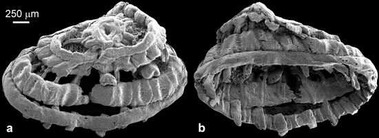 据新华社电 记者从中国科学院南京地质古生物研究所获悉,中国、美国、瑞典、德国古生物学者组成的团队近期对我国陕西南部约5.35亿年前的远古化石进行研究,新发现一种形态类似“五环”的动物肌肉化石。科研人员判断,这种肌肉很可能位于动物“嘴巴”上,远古动物靠其收缩和舒张完成进食。 领导此项研究的中国科学院南京地质古生物研究所研究员张华侨介绍,此次发现的动物肌肉化石共有3枚,其中一枚较好保存了完整的肌肉结构。从形态上看,这种肌肉呈现类似“五环”的结构,从顶到底由五个直径逐渐增大的环组成。第一、二环基本处于同一平面,之间有明显的空隙。第二到第五环紧密贴合,呈圆台状排列。第一、三环之间有19条辐射状结构连接,第三、五环之间有36条纵向结构连接。肌肉化石标本体形微小,最大的五环直径约3毫米。 相关研究成果于11日在线发表在权威生物学期刊《英国皇家学会学报B辑生物科学》上。